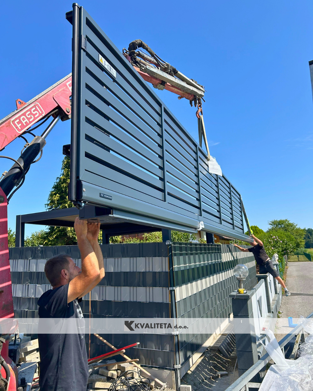 Zaradi teže smo vrata postavili s pomočjo dvigala, kar omogoča natančno in varno montažo.